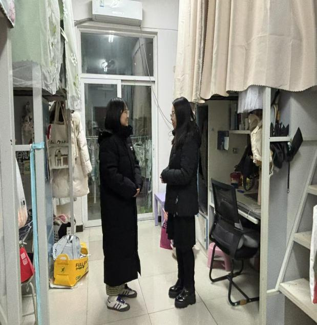 学生诉求深了解,师生协力筑家园。对于上述情况,检查组老师们对宿舍同学进行了提示与指导,提醒大家要提高安全和卫生意识,及时发现和排除安全隐患,及时清洁打扫宿舍,并在放假离校之前完成一次彻底的卫生清洁并做好离校前的安全相关工作,确保宿舍安全和卫生整洁。老师们鼓励同学们养成良好的安全意识和生活习惯,每位同学都是宿舍安全的第一责任人,保持宿舍干净整洁与生活安全是大家安心学习和个人发展的基础。除了安全与卫生检查,老师们还利用此次机会与学生们进行了面对面的交流沟通。了解学生们在宿舍生活中的需求和困难,倾听他们对于宿舍管理的意见和建议。