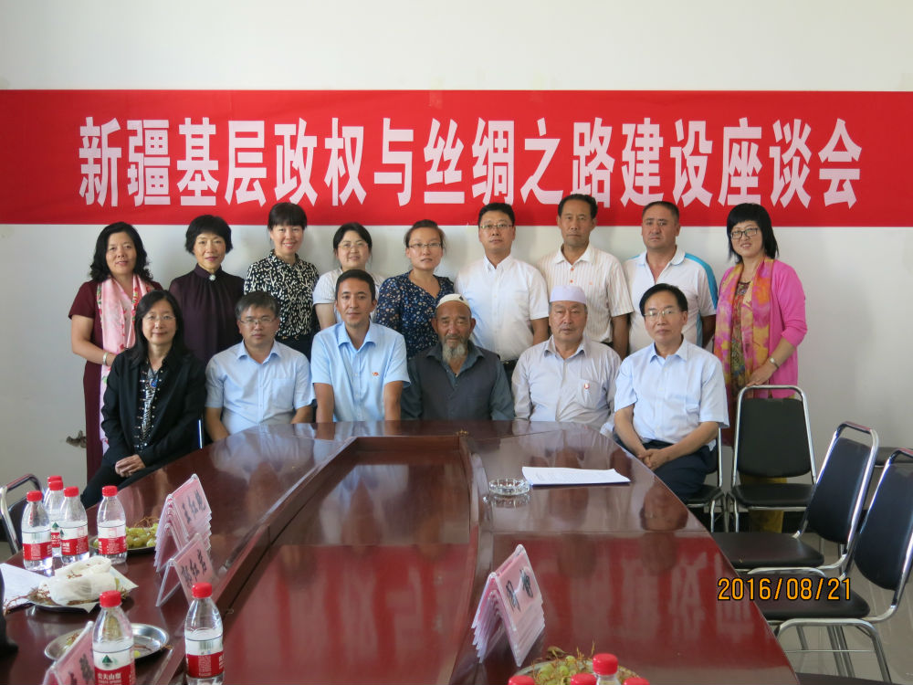 8月21日下午调研团前往阿拉尔市下属民族乡--托喀依乡,与乡政府工作人员、新疆访惠聚工作组成员以及维吾尔族老党员进行了关于基层政权与丝绸之路建设的座谈,并参观了改善维吾尔族群众、尤其是维吾尔族妇女经济条件、增加就业机会的民生工程---来料加工的企业的生产活动。