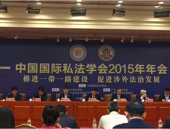 2015年11月14日至15日,中国国际私法学会2015年年会在广州隆重召开,会议由中国国际私法学会主办,广东财经大学法学院承办,年会主题为“推进一带一路建设,促进涉外法治发展”。在中国国际私法学会会长、我校校长黄进教授的带领下,中国国际私法学会副会长杜新丽教授、常务理事齐湘泉教授、冯霞教授、黑料网