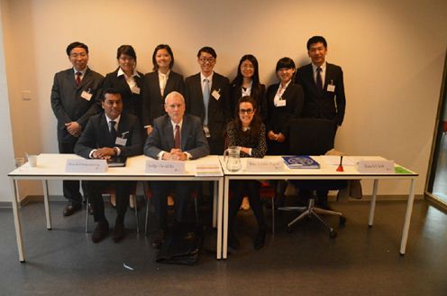 2013级硕士研究生黄滨苇和夏莹智。在5月19日下午举行的初赛第一场比赛中,由吴常德(辩手)和黄滨苇(助理)上场的我校代表队(担任检察官)对阵阿尔巴尼亚地拉那大学代表队(担任辩护律师)和俄罗斯高等经济学院代表队(担任S国政府律师)。在5月20日上午举行的初赛第二场比赛中,由龚惠兰子(辩手)和杨秋思(辩手)上场的我校代表队(担任S国政府律师)对阵法国巴黎第二大学代表队(担任辩护律师)和印度尼西亚大学代表队(担任检察官)。在5月21日下午举行的初赛第三场比赛中,由杨秋思(辩手)和龚惠兰子(辩手)上场的我校代表队(担任辩护律师)对阵希腊大学代表队(担任检察官)和斯洛伐克大学代表队(担任S国政府律师)。尽管最终无缘半决赛,但是在比赛中经过赛前刻苦准备所展现出来的国际法,尤其是国际刑法和国际人道法方面的专业知识、英文水平、法庭陈述技巧和礼仪风范,都给担任裁判的法官和作为对手的外国大学学生留下了深刻的影响,扩大了我校在国际法律教育界以及国际司法界的影响。