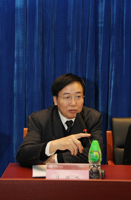 然后,孔庆江院长上台发言。他寄语本次比赛中脱颖而出的冠军代表队们,希望他们代表中国选手在海牙的国际刑事法庭审判竞赛中再获佳绩。他感谢所有参赛者的积极参与和努力,向他们彰显出的学子风采致以敬意。最后,他感谢本次比赛的顾问专家们作出的指导和帮助,感谢所有评审法官的辛勤工作,他们如国际刑法所倡导的公平与正义的化身,让本次比赛蕴意丰富,精彩纷呈。