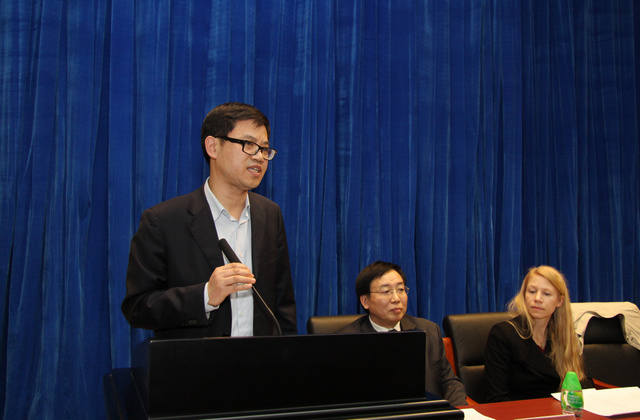 首先,刘大群法官代表所有评审法官上台致辞。他感谢我校对各位法官的邀请,感谢主办方对本次比赛的大力支持和细致安排。然后,他总结了本次比赛的基本情况,同时对现行国际刑事法庭的状况和发展做了简要介绍。此外,他还对本次比赛中参赛选手的表现做了简要的点评。他向所有参赛选手为比赛所付出的辛勤努力致以敬意,指出他们在详尽分析法律争议中体现出的开放性思维和丰富的论证,展示了法律作为一门推理艺术的魅力所在;同时也指出,对国际刑法法律基本原理和基础知识的欠缺尚普遍存在。最后,他鼓励大家夯实法学基础,保持逻辑性、辩证性思维,在对国际刑事法律问题的研究和论辩中不断进步。
