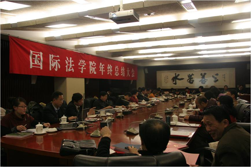 首先,国际公法、国际私法、国际经济法研究所所长总结了本年度研究所工作。国际公法研究所所长高建军老师、副所长郭红岩老师,国际私法张玲老师代替在国外的刘力所长、副所长霍政欣老师,国际经济法所长杨帆老师、副所长祁欢老师总结了2012年三个研究所的工作情况。各研究所在2012年,在教学上根据同学的情况调整了课堂平时成绩比重;在研究上,注意理论联系实践,用研究成果指导实际工作;在竞赛上,在贸仲杯模拟法庭竞赛、中国高校国际人道法模拟法庭竞赛等多个比赛中都获得了优异的成绩。