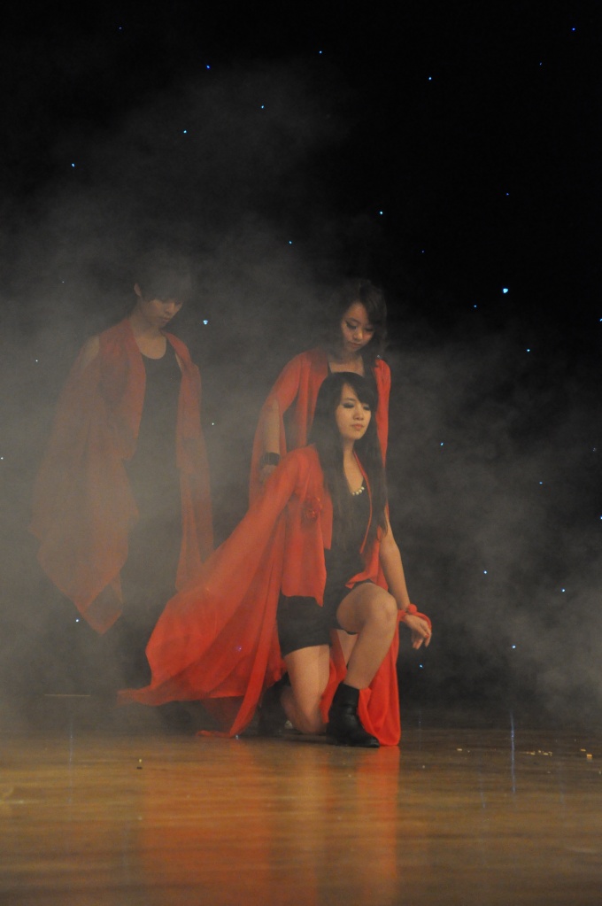 以“迎新展台报名”为内容的开场短剧过后是充满青春活力的开场热舞。融合多种元素的舞蹈带来了晚会的第一个高潮。红色的纱裙随着乐点在空中飘扬,翩若惊鸿,美到让人窒息。紧接着国经学生会部长们带来了精彩的正装舞蹈,给新生们展示了师兄师姐们平时看不到的的另一面。开场舞的第三部分是极具看点的现代扇子舞,扇子在演员的手中变换出多种花样,一下是少女遮面,一下是波涛汹涌,一下又一下的撞击着观众们的心,引起了观众们尖叫连连。