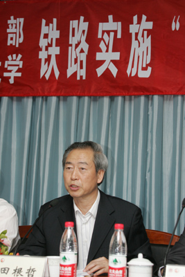 十分重视此次校部合作。他从大学的历史发展阐述了大学的三大功能——教学、科研和社会服务,强调在当今社会,大学除了传承知识,应加强同社会的联系,积极为国家、社会做贡献。他指出,我校历来重视加强学校与社会的联系,以推动大学对社会做出贡献,此次校部合作也将成为我校开放式教学的重要典范。他认为,铁路在实施“走出去”战略的过程中,需要培养掌握外语、工程建设、法律和经营知识的人才,虽不能全面精通,但要有一定的知识和能力。他希望通过本次进修班研讨式、探究式、案例式等教学方式,让学员们掌握铁路实施“走出去”战略所需的法律知识,同时,在师生互动对实践中的问题共同探讨,达到教学相长的目的。此外,他强调,此次铁路法律人才高级进修班的开展将为我校探索和打造高水平的培训平台,加强对社会文化的引领提供良好的契机,同时,我校也期待着双方的深度合作。