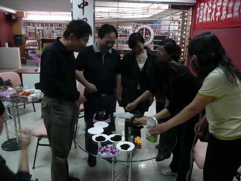 范亚新老师给大家演示了精彩的茶道和作何做咖啡。范老师从自己对中国茶文化的理解,给本次沙龙安排了“茶中四季”,让大家从品茶中感受春夏秋冬四季的轮换。范老师还精心准备了咖啡和点心,让大家在工作的繁忙中暂获难得的休憩和享受。