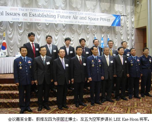 国际法研究所所长、航空与空间法研究中心副主任李居迁博士在韩国首都汉城出席第六届国际空间法会议。此次会议由韩国空军主办,空军参谋长LEE Kae-Hoon将军邀请来自中国、韩国、美国、日本等国的军界和学界有关人士出席。会议由会议主题是讨论“建立航空与空间强国的法律问题”, 参加会议的各界人士约200人。