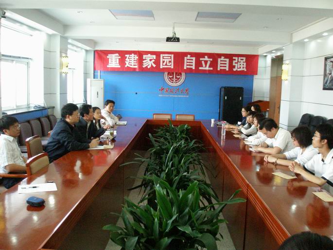 在主楼第五会议室召开了资助本院在“5.12”地震中受灾学生的座谈会,这次会议的主题是“重建家园,自立自强”。参加会议的有校学生处副处长高晓光,院分党委书记宣增益,院分党委副书记兼副院长顾永强,院分团委书记范亚新,国际经济法研究所祁欢,各年级辅导员以及9名在此次地震中受灾比较严重的同学。会议由顾永强老师主持。