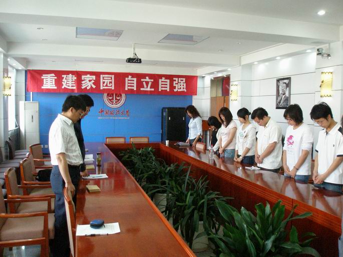 会议开始之前,全体与会人员起立为在“5.12”地震中遇难同胞默哀1分钟。会议开始后,首先由顾老师介绍了此次会议的主旨。他说学院对在这次地震中家中蒙受损失的同学高度关心,高度重视,院务会研究决定给予每名受灾同学1500元的补助。院务会还认为地震灾害给同学们的家庭造成了重大损失,但更重要的是它会在心理和情绪上给同学们带来压抑和压力,因此,学院希望通过召开这次座谈会以及后续的各项帮助措施以缓解同学们的压力,使大家在学习生活等方面免受更多不利影响,化悲痛为力量,自立自强,从而促进同学们的全面发展和成长。