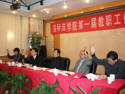 莫世健院长做了《院长工作报告》,报告回顾了2007年学院工作,对教学科研、迎接本科教学评估、对外交流、研究生工作、学科建设、日常管理、对外办学等方面作了深刻详细的报告。随后分别由副院长马呈元、副书记顾永强和学院工会委员齐湘泉分别作了《学院财务工作报告》、《学院工会工作报告及工会财务工作报告》和《提案工作报告》。