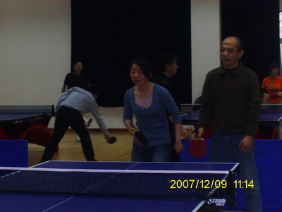 在羽毛球比赛过后,意犹未尽的国私全体师生又来到乒乓球馆一展身手。比赛同样采取了师生混合的形式。由于擅长乒乓球的老师和同学较多,所以多局比赛难分胜负,比分交替上升。但此时,开心的笑声和融洽的气氛使得比分已不再重要,师生们在课堂之外的零距离交流才是最宝贵的。