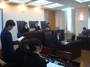 学生会实践部主办的 “模拟法庭”在明法楼204模拟法庭教室准时拉开序幕。
