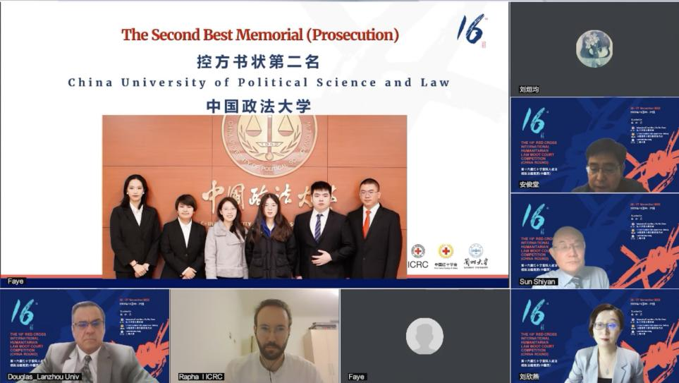 2022年11月26至27日,由红十字国际委员会、中国国际人道法国家委员会与兰州大学法学院共同主办的第16届中国大陆地区红十字国际人道法模拟法庭竞赛在线上举行。本届竞赛吸引了中国大陆地区60所高校代表队参与,再次创下了这一赛事自举办以来的参赛规模记录。经过书状环节的选拔,共有32支代表队进入口头竞赛环节。该赛事是中国高校国际法领域竞争最激烈的模拟法庭赛事之一。