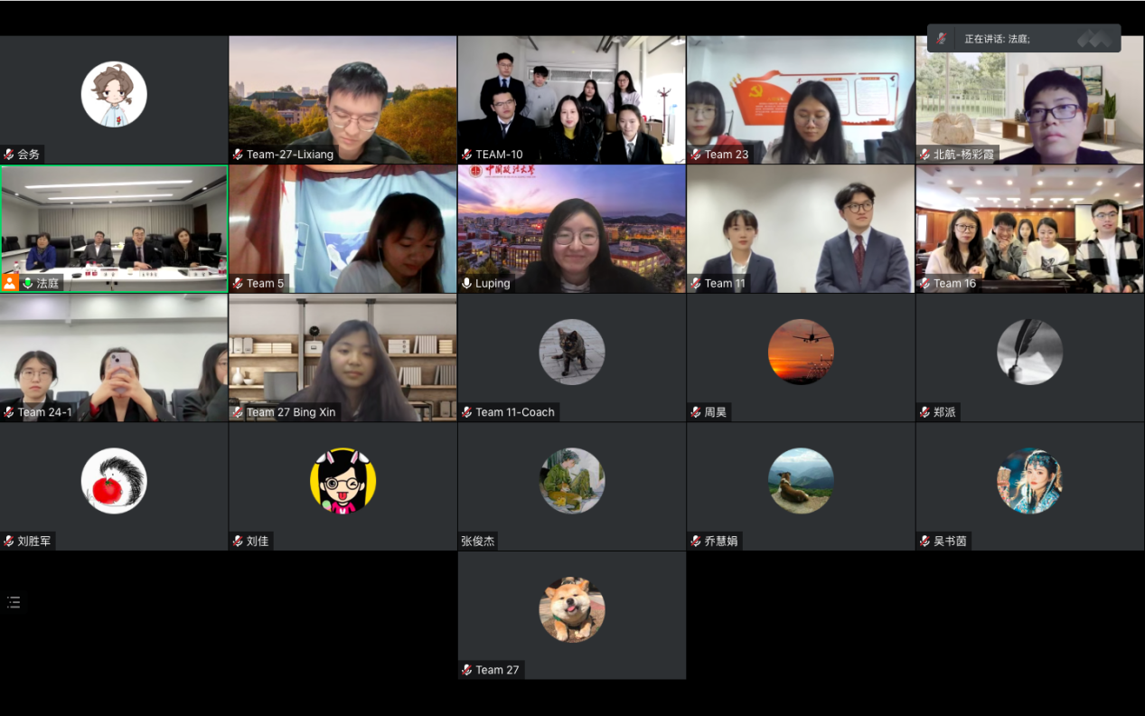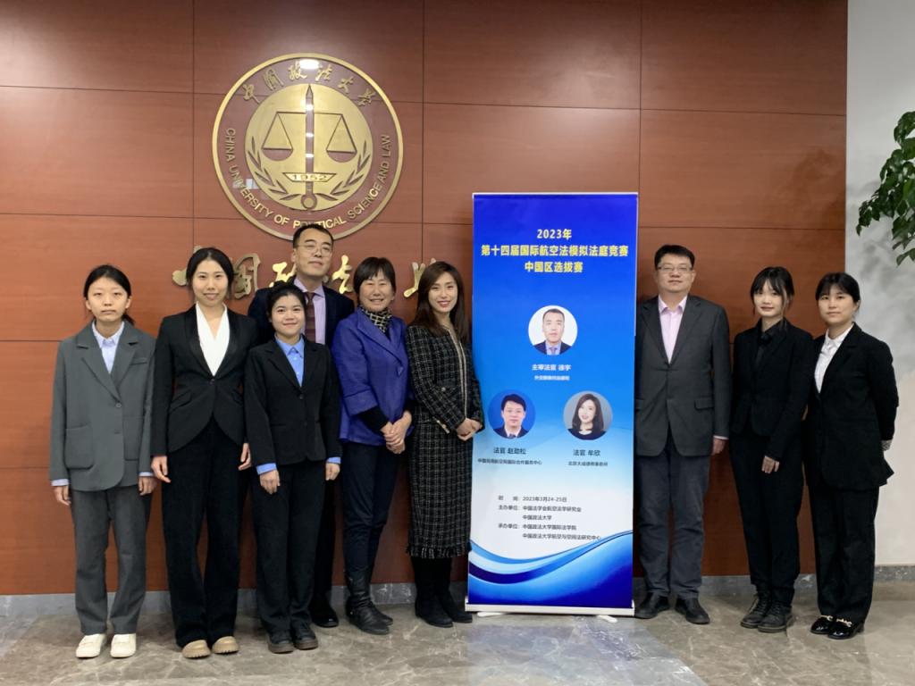 、武汉大学、北京航空航天大学、华东政法大学、中国民航大学、北方工业大学、暨南大学等学校代表队的参与。经过两天的激烈竞争,我校代表队取得总分团体奖冠军、正方最佳书状奖第一名、正方最佳口头答辩第一名、正方最佳辩手第一名(王小琛)、正方最佳辩手第二名(符菀苡)、最佳指导老师奖(张鹿苹)共六项奖项。成功晋级将于五月份在荷兰莱顿举行的国际赛。