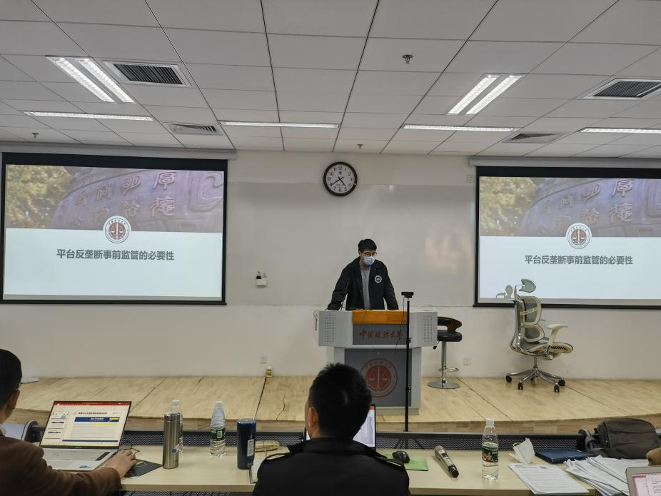 刘靖山同学主要介绍了平台反垄断事前监管的必要性、美国与欧盟平台反垄断事前监管的实践以及我国平台反垄断事前监管的完善。他通过对平台垄断势力的分析,指出传统反垄断事后执法体制应对平台反垄断存在失灵的原因,平台反垄断规制应当将事前监管与事后执法相结合。他分析了美国《数字市场竞争调查报告》与EPM、PCO、AICO、ACCESS等一揽子法案以及欧盟DMA中的平台反垄断事前监管的实践,并对比我国《互联网平台分类分级指南(征求意见稿)》和《互联网平台落实主体责任指南(征求意见稿)》,提出了我国平台反垄断事前监管完善的建议。