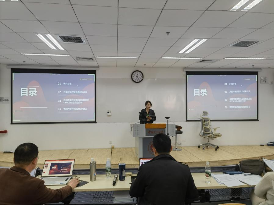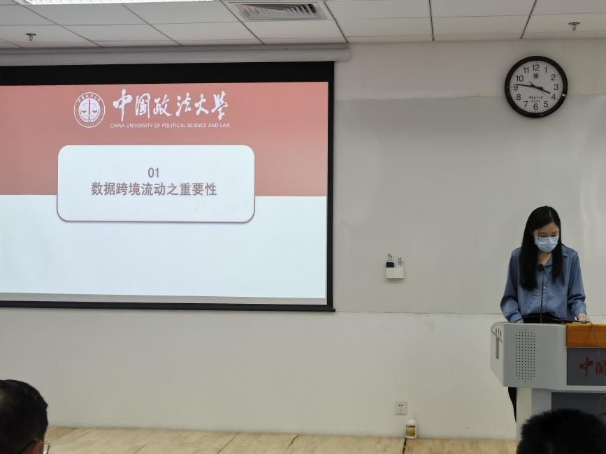 何芷程同学分享的主题是数字经济背景下数据跨境流动本地化措施的中国应对。她以数据跨境流动在生活中的应用实例入手,带出数据跨境流动的重要性,针对区域贸易协定文本中的数据本地化条款进行梳理和比较分析,指出我国在数据跨境流动中面临的治理困境。最后,总结数字贸易规则碎片化的隐忧并提出中国援引合法公共政策例外作为采取数据本地化的制度差异之抗辩的见解。