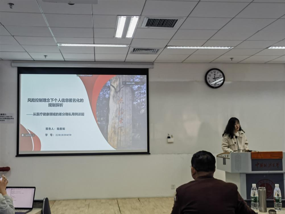 陆韵如同学分享的主题是个人信息保护领域的个人信息匿名化规则研究,从医疗健康领域的几个差分隐私技术用例谈起。她从个人信息匿名化概念和界定标准出发,介绍了中国、欧盟的匿名化规则和美国的去标识化规则,结合匿名化法律规则的现存的风险和差分隐私技术在医疗健康领域的几个用例,分析了公共健康与个人信息保护之间的矛盾。为解决这一矛盾,在信息匿名化的全流程合法性规制中引入了场景与风险控制理念。最后,从国内规范的完善和域外规则的借鉴两个层面为中国完善医疗健康领域的个人信息匿名化规则提出建议。