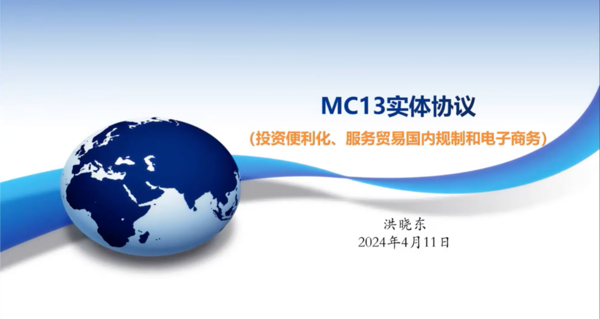研讨会聚焦于MC13“实体协议”议题,由清华大学杨国华教授主持。中国世界贸易组织研究会专家、商务部世界贸易组织原副司长洪晓东先生作主题发言,就“实体协议之投资便利化协议、服务贸易国内规制和电子商务”发表了演讲。研讨会还邀请了武汉大学的漆彤教授和南开大学的胡建国副教授作为评议嘉宾。