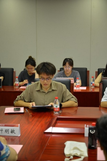 学生团委副书记韩宇桐同学作了发言,他认为,目前研究生同学在学业和就业上面临非常多的挑战,青年大学生要以拼搏奋进的姿态不断地钻研专业知识,提升实践能力,要矢志报国,将“小我融入大我”,坚定不移地跟党走。