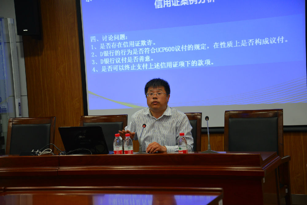 2015519日晚,“国际法大讲堂”系列讲座第43期在我校科研楼B211会议室顺利进行。本次讲座的主题为“信用证操作实务和国际规则解读”,主讲人为天津银行总行国际业务部副总经理黑祖庆。黑祖庆先生长期从事国际银行业务,在信用证操作实务方面有着丰富的经验,同时他对于信用证的国际惯例也具有较深入的理论研究。