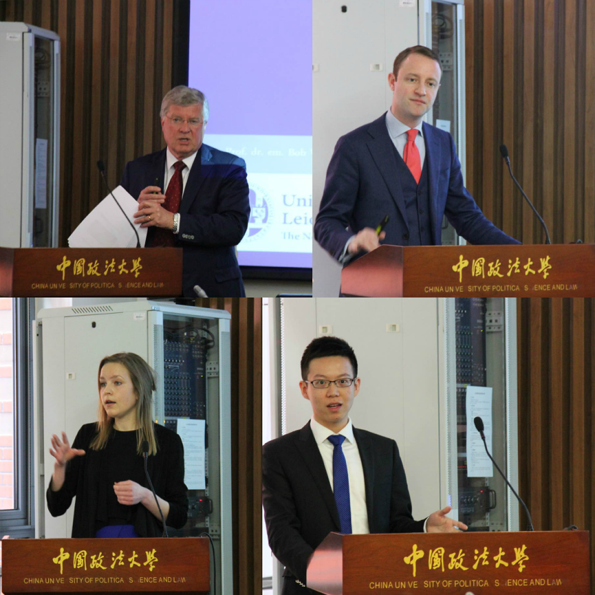 院长孔庆江教授、荷兰莱顿大学Matthias Haentjens教授主持,荷兰莱顿大学Bob Wessels教授、山东大学法学院院长沈伟教授、英国萨里大学杜明教授、安徽大学法学院范晓亮教授、北京外国语大学法学院顾宾教授、黑料网
