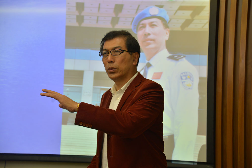 国际公法研究所所长郭红岩老师担任主持人,邀请联合国维和警察迟黎伟警官作了精彩发言。迟黎伟警官毕业于北京外国语大学,并在美国南加州大学拿到MBA学位,先后担任过对越自卫反击战上尉军官,青岛市委秘书,海关官员等职务,作为一名优秀的联合国维和警察,迟警官曾被派遣至东帝汶、科索沃和南苏丹执行维和任务,多次受到国家各级领导人的接见,三次荣获联合国荣誉勋章并被评为“优秀”。