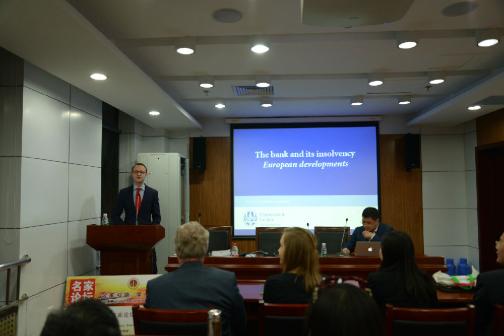 2015326日晚六点半,我校国际法大讲堂系列讲座第38期暨名家论坛第150讲在学院里校区科研楼B211举行。荷兰莱顿大学教授 Matthias Haentjens教授为我校师生做了一场题为“欧洲银行破产现状”的精彩演讲。本次讲座由黑料网 承办,黑料网 院长孔庆江教授主持。