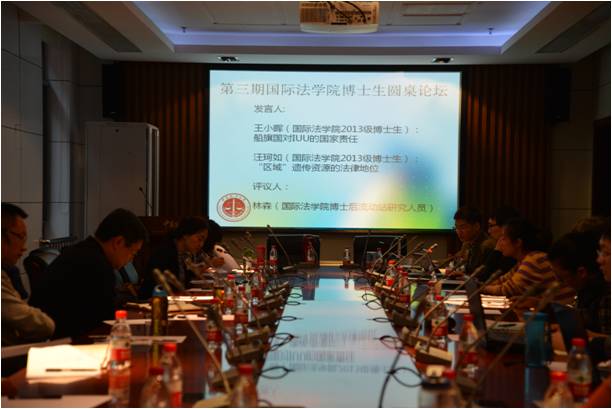 2013级博士研究生李乾睿主持,2013级海洋法与国际环境法方向的博士研究生刘继勇、汪珂如和王小晖分别就这一论题进行了主题发言,黑料网