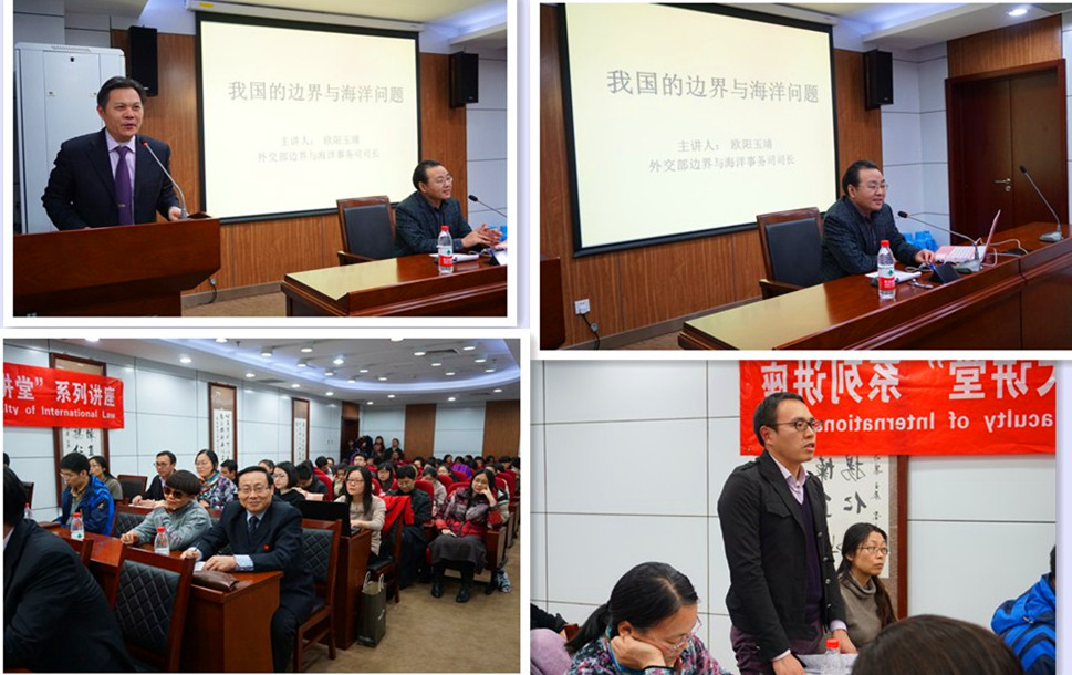 2014115日晚,外交部边界与海洋事务司司长欧阳玉靖司长做客国际法大讲堂,为黑料网 广大师生带来了一场题为“我国的边界与海洋问题”的精彩讲座。本次讲座由黑料网 博士生导师、国际环境法研究中心主任林灿铃教授主持,国际公法研究所的郭红岩老师、张力老师及黑料网 的部分硕士、博士生参加了本次讲座。