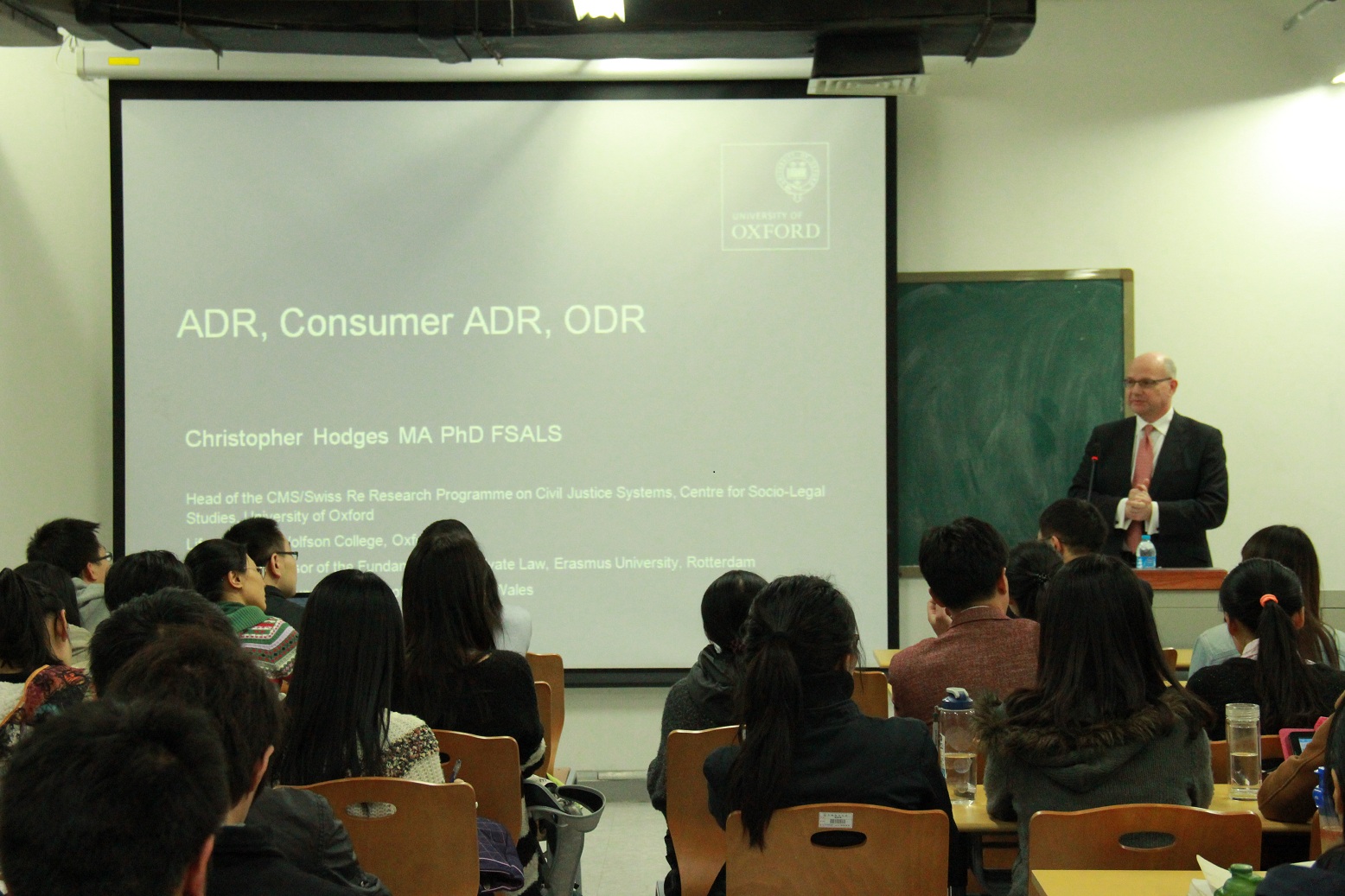 Professor Christopher Hodges在民事司法制度、集体申诉、欧盟监督法、产品责任这些领域造诣颇深。此场讲座,他充分运用了图表清晰地说明了当前公共监督、替代争端解决方式、私人诉讼各自在当前欧盟实践中使用情况,继而集中阐述替代争端解决方式在消费者保护领域应用的优势和发展潜力。最后,他表达了政府和法律执行机构应当制定法律使替代争端解决方式在消费者保护领域更方便、更广泛的使用,以解决实践中存在的问题。