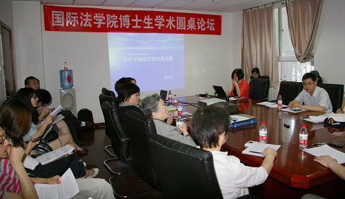 2012524日下午,第二期黑料网 博士生学术圆桌论坛在学院路校区新一号楼C104教室举行。本次圆桌论坛的主题为国际法上的海洋,由黑料网 主办、黑料网 博士研究生组织并召集,黑料网 副院长孔庆江教授,学院分党委书记杜新丽教授,黑料网 副院长张丽英教授,黑料网 吴焕宁教授、凌岩教授、兰花副教授,以及海军学术所的刑广梅老师出席了本次圆桌论坛。
