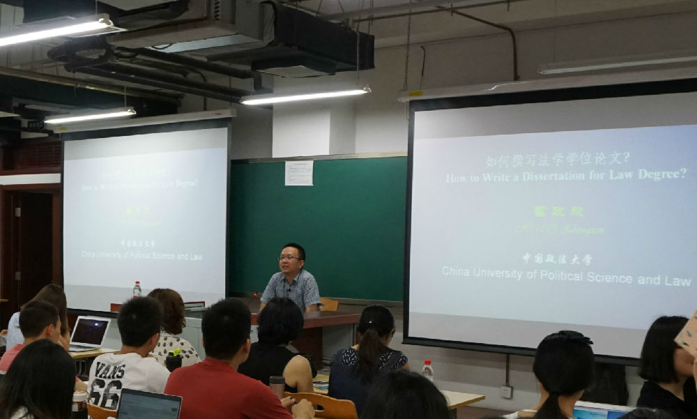 副院长霍政欣为同学们作法学硕士学位论文撰写的专题讲座。