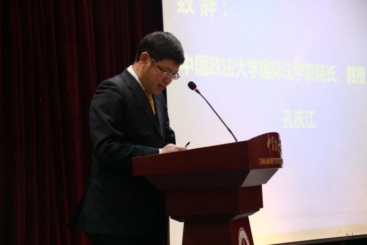 院长孔庆江。他表示,WTO加快了中国的改革开放,使中国经济走向腾飞阶段。在改革开放四十周年之际,举办此次大赛尤为重要,它体现出了大家将改革开放进行到底的决心。本次比赛正是要将实践带入法学理论学习,在模拟的实务操作中发现、培养涉外人才,为我国对外交涉提供人才储备。最后,他对本次活动的组织者、创始人表示感谢,并预祝参赛同学取得满意成绩。