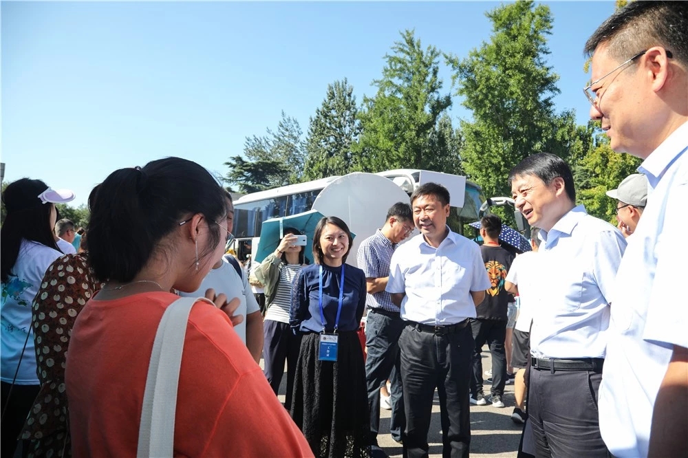 迎新工作,亲切慰问了迎新展台的志愿者们,并与新生家长展开了亲切交谈。院党委书记兼副院长顾永强等陪同。