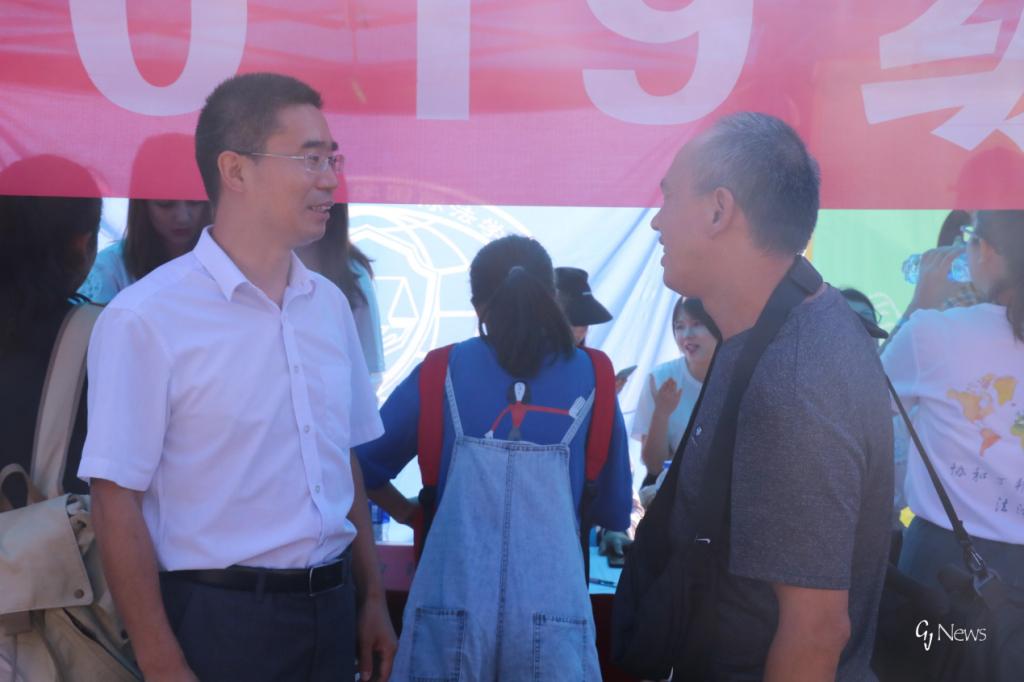 老师关怀,家长开心,新生旧生情谊初建。领导和老师们四处走动,不时询问进展状况,以确保各项迎新工作的顺利开展。法大同学的热情感动了家长们,他们和志愿同学热情交谈,纷纷在学院的展台前合影留念,定格他们的家庭和法大交汇的幸福时光。一句句亲切的“师兄”、“师姐”,透出的是新生对法大的向往和信任,法大也不会辜负每一个奋斗者的期待。
