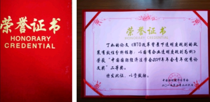 本次年会,丁如老师的论文《WTO改革背景下透明度规则的政策有效性分析框架:以国企业透明度规则为例》荣获“中国国际经济法学会2019年年会青年优秀论文奖”二等奖。
