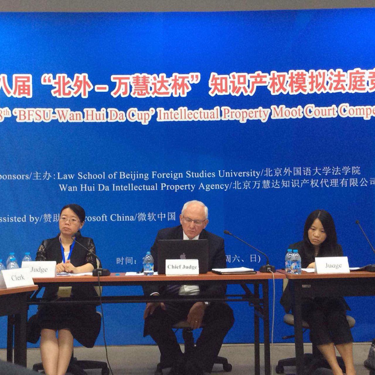 2015年5月23日至5月24日,我校代表队赴北京外国语大学参加第八届“北外-万慧达”杯知识产权模拟法庭竞赛 (‘BFSU-WANHUIDACUP’ Intellectual Property Moot Court Competition)。本次大赛在北京外国语大学日本学研究中心举行。经过两天的激烈角逐,我校代表队在初赛第一场对阵本次冠军队澳大利亚Bond大学队,表现出色沉稳,取得原告方全场第一名91.67分的佳绩,与对方打成平局;最后以积分赛总分第二名的身份,晋级半决赛;在半决赛中我校选手再接再厉,,但以微弱差距惜败于台湾东吴大学代表队,最终获得季军。此外,我校代表队所提交的被告方书状取得最高分,获得了最佳书状奖 (The Best Memorandum);李芳菲同学获得优秀辩手奖 (The OutstandingOralist),续写了我校在这一国际赛事的优异成绩