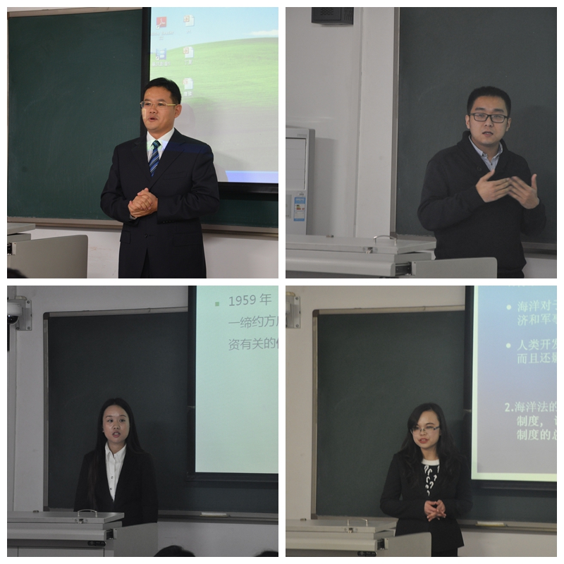 根据比赛规定,每位教师需选择自己所讲授的专业必修课的一部分课程内容进行约为20分钟的课堂教学展示。第一位上场的是张西峰老师,他围绕“国际贸易支付法律制度”展开讲解,细致入微地讲述了国际贸易的支付工具和支付方式;第二位上场的是薛童老师,她以实例引入法律规避这一话题,阐述了法律规避的概念以及相关法律规定;接下来上场的是丁夏老师,她讲述的主题是国际投资法中的“保护伞”条款;唐雅老师最后出场,她向大家讲解了国际海洋法的相关知识,列举了诸多时事热点案例,引发了大家关于如何和平解决海域冲突问题的深刻思考。