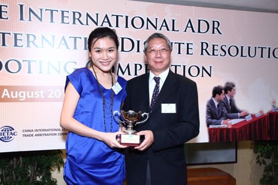 范晓波老师担任领队和指导教师,队员由2010级硕士研究生李冰、杨娴婷、王娉娉以及本科生张婉露同学组成。黄儒卿、曹玉婷、张沙沙等同学作为初选队员参与了比赛的前期准备工作。在比赛的第一阶段,经过与中国法官代表队、尼泊尔加德满都大学、华东政法大学、上海政法学院的激烈角逐,我校代表队成功晋级。在进入四分之一决赛后,我校代表队与此次大赛的东道国主香港城市大学代表队对阵,尽管我校代表队沉着应战、发挥稳定,但最终惜败。香港城市大学代表队在本届比赛中最终获得了冠军。在仲裁员/调解员系列的比赛中,我校参赛选手李冰同学发挥出色,闯进决赛,终获殊荣。杨娴婷同学以流利的英语和精彩的辩论给评委们留下了深刻印象,并被提名为最佳辩手候选人。