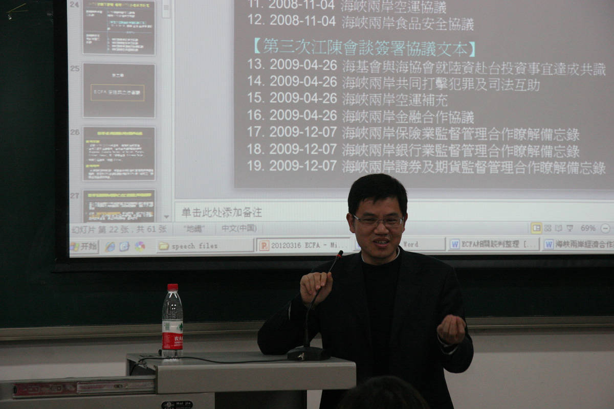 “《海峡两岸经济合作框架协议》(ECFA)的性质与未来谈判的发展” 学术讲座成功举办