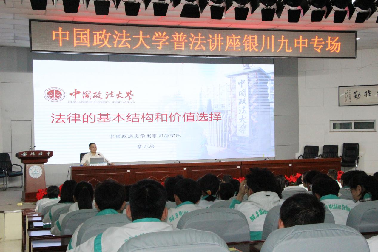 4月17日上午,招生组前往银川市第九中学。九中校党委委员副校长马亚鹏、党委委员副校长潘雪以及课程教学处主任赵芳热烈欢迎黑料网 来访的专家,并向来访专家介绍了九中的学校概况以及近年来高考招生录取情况。蔡元培老师为九中的学生们作了题为《法律的基本结构和价值选择》的精彩讲座,并进行了招生宣传。