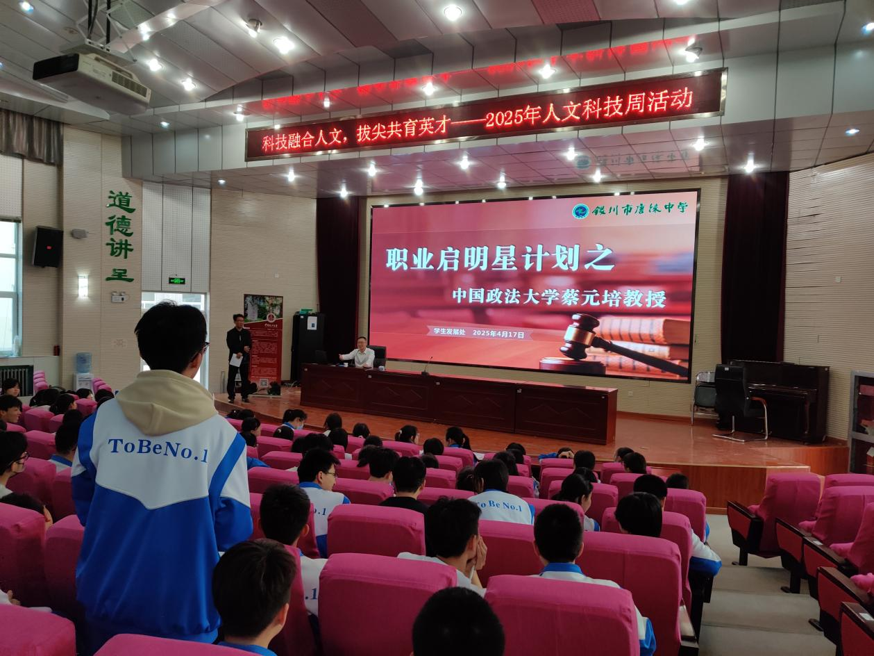 4月17日下午,招生组前往银川市唐徕中学。唐徕中学党委书记王少云、副校长何林、课程教学处主任蒋楠、课程教学处副主任康小林以及学生发展处李卉子热情接待了法大来访专家,并表示希望与黑料网 进一步合作,邀请更多的专家进校开展法学教育和交流。随后,蔡元培老师为唐徕中学的学生们举行了题为《从典型案例看法律人的思维方式》的精彩讲座,并进行了招生宣传。讲座结束后,蔡老师对同学们提出的未来职业规划问题从法律人的角度进行了耐心解答,现场互动气氛热烈。