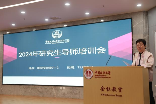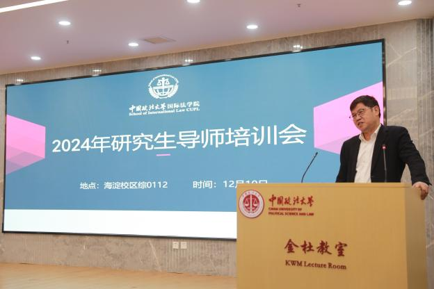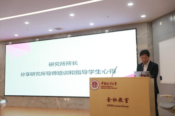 院长孔庆江教授发言,孔教授指出导师在研究生的培养和成长过程中具有重要的引导作用,因而对于导师的培训是不可或缺的。通过导师培训会,一方面能够鼓励研究生导师重视对学生的培养工作,做到专业、细致、高质,另一方面也能够为导师直接学习交流提供平台,提高导师的育人能力和教学质量,为学校和国家培养更多、更优质的法律人才。
