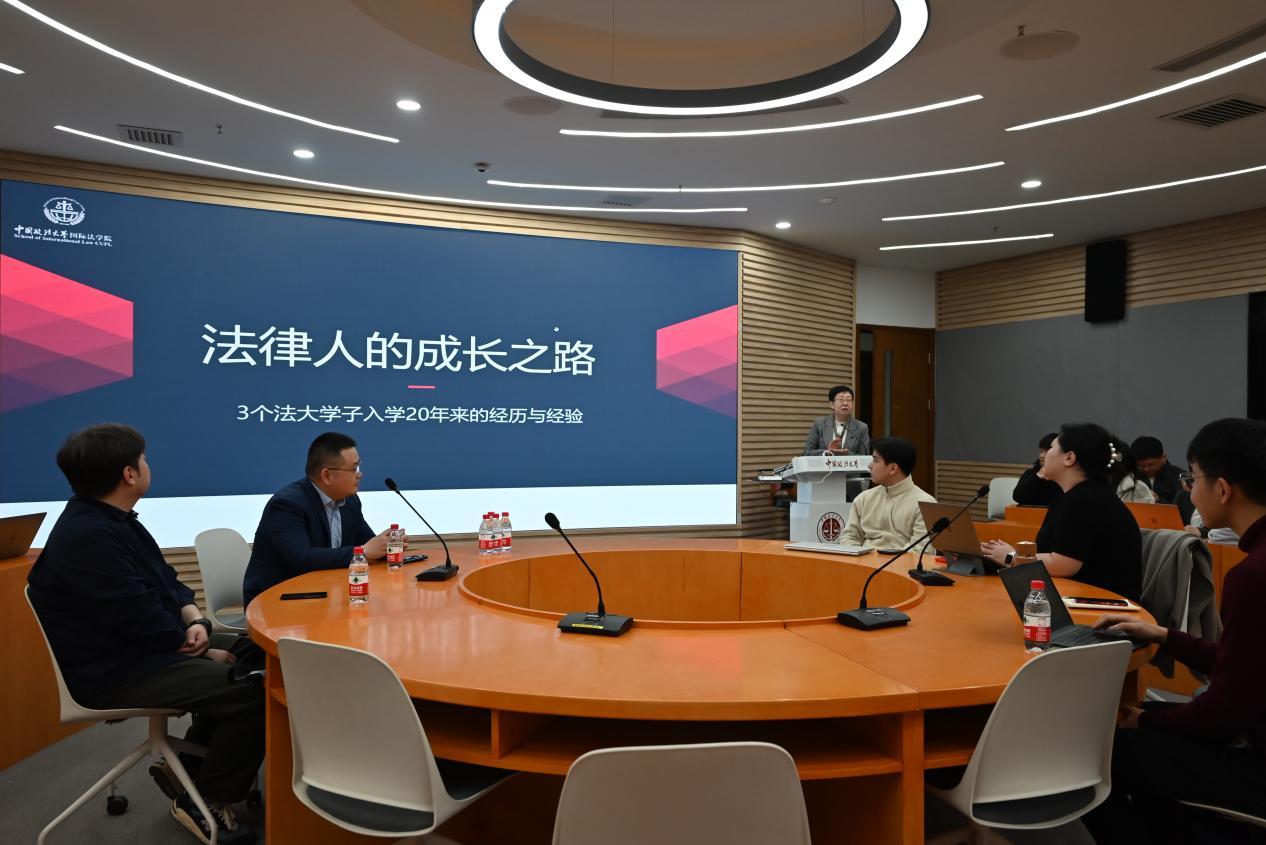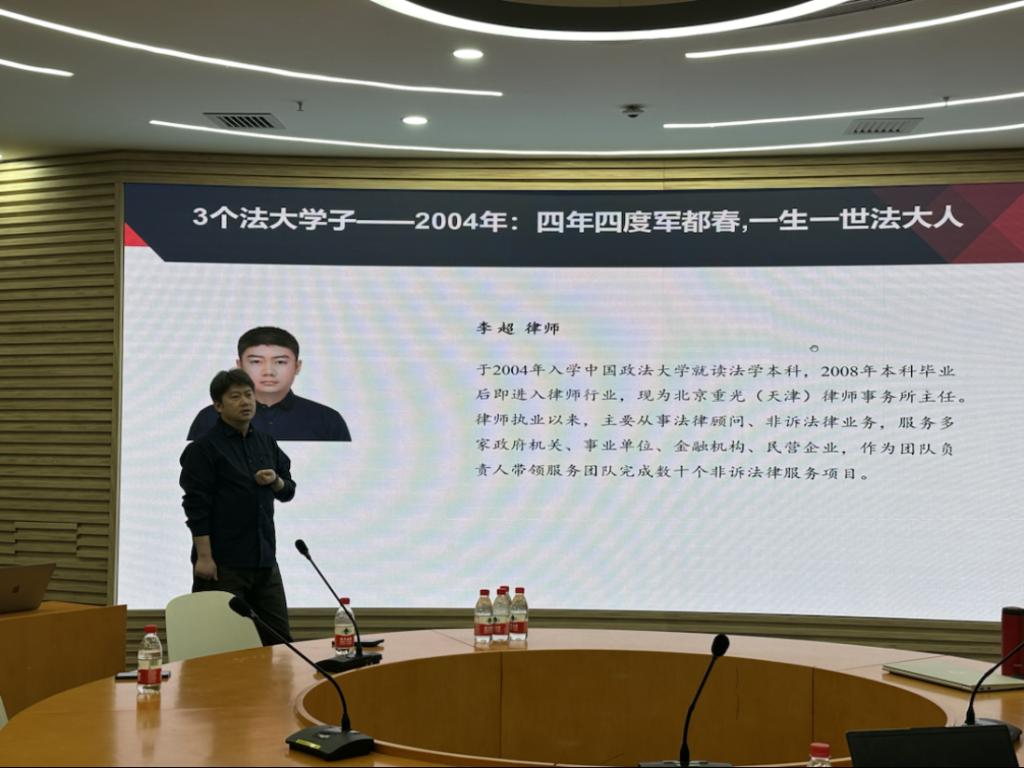 2004级的三位校友吴昊律师、李超律师、方啸中律师(远程参与)在回顾各自二十年来的法律人学习、成长经历的同时,向在校的法大学子分享了职场经验与思考。