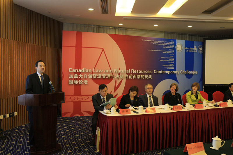 校长黄进、蒙特利尔大学副校长Geneviève Tanguay出席开幕式并致辞;商务部美大司司长江山、中国矿业联合会副会长陈先达、中国航天科工集团副法律总顾问王耀国、中国外国专家局调法司副司长王香荣、中国黑料网协会会长张斌应邀出席此次论坛开幕式。