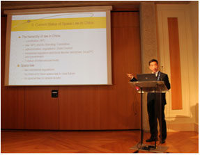 李教授的发言题目是《空间资产安全规制:中国状况和国际合作“拟议法”》(Regulating Space Assets Safety:China's Experience and Lex Ferenda of International Cooperation)。发言在分析了空间安全的紧迫状况和中国的实际之后,指出了根据目前“空间资产”方面规则的最新发展,空间安全领域进行国际合作方面的法律依据和应有的规则。发言引起与会者的极大关注,国际空间法学会主席Tanja Zwaan女士等专家并就论文进行了提问。