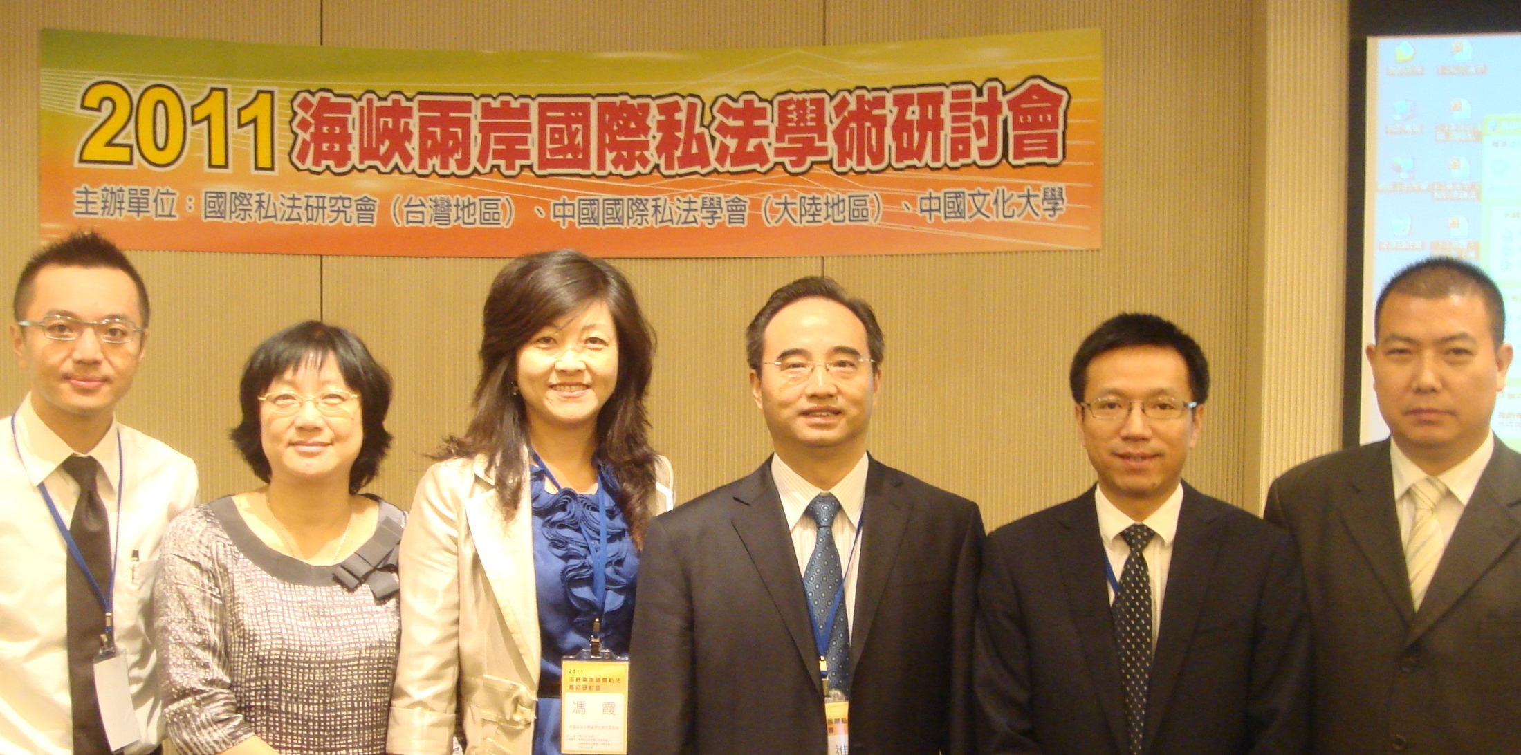 由台湾国际私法研究会、中国国际私法学会和中国文化大学主办,并由中国文化大学法律学系和台北大学法律学系执行的“海峡两岸国际私法学术研讨会”于2011年9月19-20日在台北举行。此次研讨会是海峡两岸国际私法学术研究形成机制后的第七届研讨会,在海峡两岸新国际私法先后正式实施之际举行具有特殊的意义。我校黄进校长,冯霞教授和曾涛副教授受邀和台湾国际私法专家、学者,围绕“两岸新国际私法之适用与比较:特色与评价”、“两岸新国际私法之适用与比较:通则及权利主体”、“ 两岸新国际私法之适用与比较:法律行为及代理”、“ 两岸新国际私法之适用与比较:涉外之债”、“ 两岸新国际私法之适用与比较:物权及智慧财产权”、“ 两岸新国际私法之适用与比较:亲属、继承”等方面的问题进行了广泛而热烈的研讨。我校黄进校长作为中国国际私法学会会长在研讨会开幕式致辞,并发表了“中国涉外民事关系法律适用法的制定与完善”的主题发言;此外,冯霞教授以“中国涉外智慧财产权法律保护立法考量”,曾涛副教授也以“两岸国际私法实践展望:以平潭综合试验区为例”为主题分别做了发言。