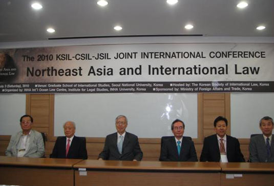 著名国际法教授周忠海先生应韩国外交通商部、韩国国际法学会和仁华大学国际法研究中心、海洋法中心的邀请,作为中国国际法学会代表团团长,率团赴韩国首尔参加中、韩、日三国国际法学会联席学术会议:东北亚与国际法。韩国外交通商部常务副部长、韩国国际法学会会长、日本国际法会长和日籍国际海洋法法庭法官等出席了会议。会上分别就国际法的基础理论和发展,国际法的适用与国家政策,国际法教育和培训及和平解决国际争端等问题进行了讨论和交流。韩国国际法学会还分别与中国国际法学会,日本国际法学会签署了国际法学术交流谅解备忘录。会议取得圆满成功。