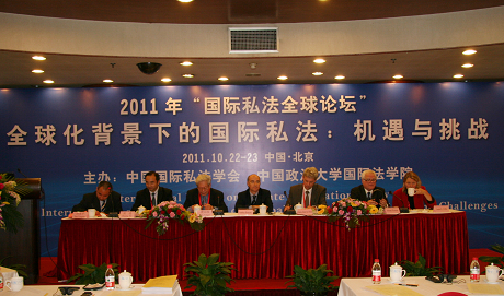 经过各国与会专家学者一天半的研讨,2011国际私法全球论坛1023日中午圆满落幕。在本次论坛的五个环节中,共有23位学者围绕“国际私法的统一化与中国国际私法”、“美国/欧洲与世界其他地区国际私法的新发展”、“当代合同/侵权/物权法律适用规则的新发展”、“中国《涉外民事关系法律适用法》评述”、“国际民商事争议的多元化解决机制”进行了主题演讲,并与与会嘉宾进行了交流。在中外学者的共同努力下,“全球化背景下的国际私法”这一主题被热烈而深入地讨论,《2011中国北京国际私法全球论坛北京共识>》也被与会嘉宾一致通过。大会闭幕式由武汉大学法学院院长肖永平教授主持。