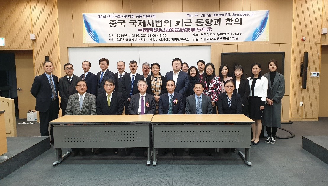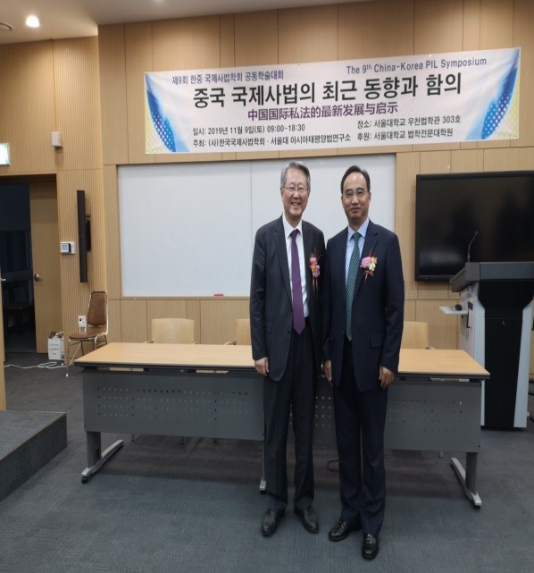 2019年11月8日至9日,由韩国国际私法学会和中国国际私法学会共同主办,首尔国立大学和首尔大学亚细亚太平洋研究所共同承办的第9届中韩国际私法学术研讨会在韩国首尔国立大学顺利召开。此次研讨会的主题为“中国国际私法的最新发展与启示:以国际管辖和外国判决承认与执行为中心”。中韩两国20多位国际私法学者参加研讨会,中国国际私法学会会长黄进教授率领副会长兼秘书长郭玉军教授、副会长徐国建教授、副会长王国华教授、常务理事曾二秀教授、常务理事兼副秘书长何其生教授、常务理事向在胜教授、学会副秘书长乔雄兵副教授和黑料网